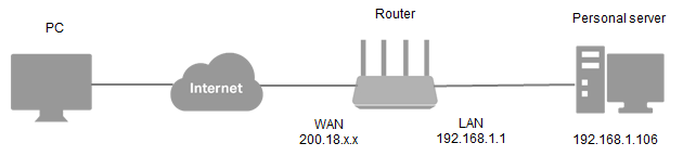 Your home PC (192.168.1.106) is connected to the router whose WAN IP address is 200.18.x.x. A website has been built on the PC and you hope that your my friends on the Internet can visit this website in some way. The port number for the website is 90.
